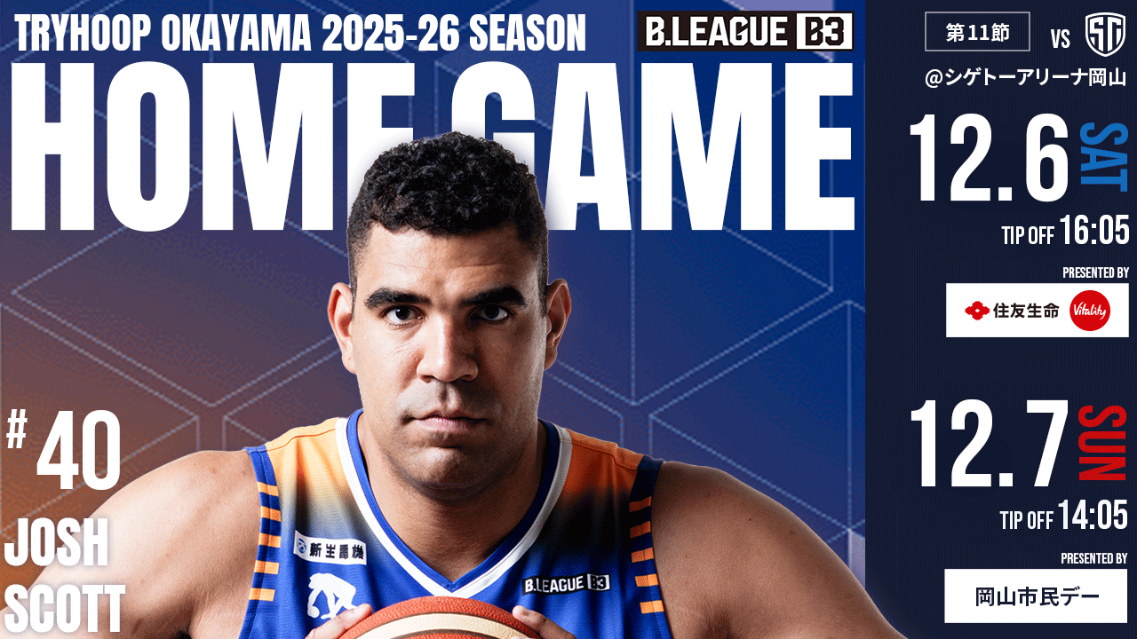 【試合情報】第11節 ホームゲーム vsしながわシティバスケットボールクラブ シゲトーアリーナ岡山(12月6日・12月7日)