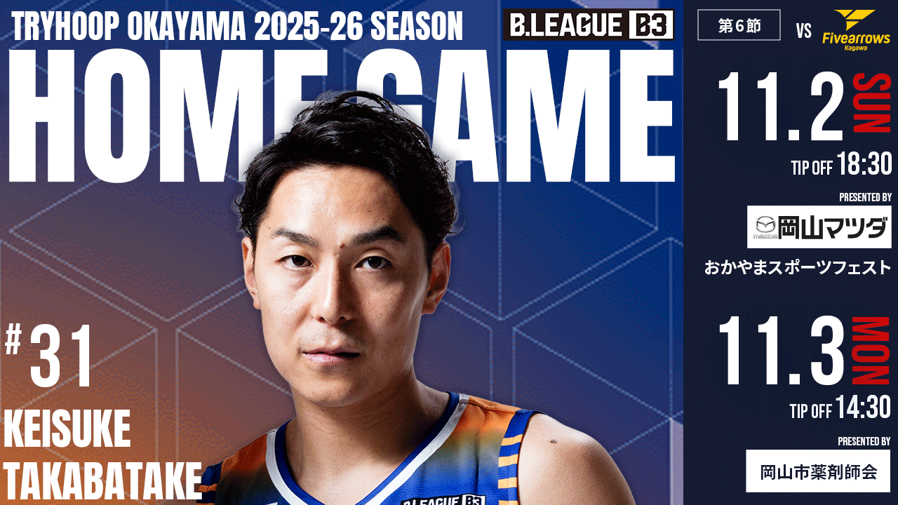 【試合情報】第6節 ホームゲーム vs香川ファイブアローズ シゲトーアリーナ岡山(11月2日・11月3日)