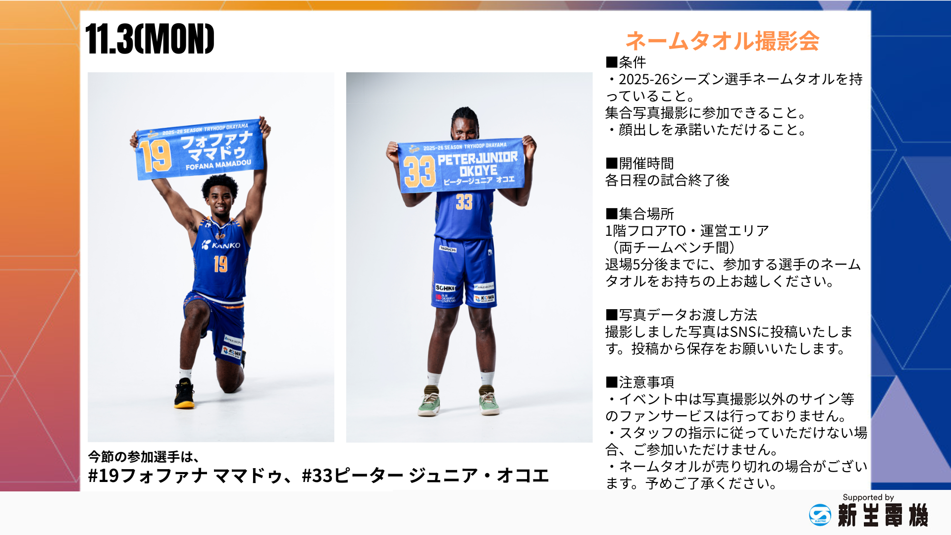 2025年11月2日(日) 18:30 TIPOFF /11月3日(月祝) 14:30 TIPOFF
