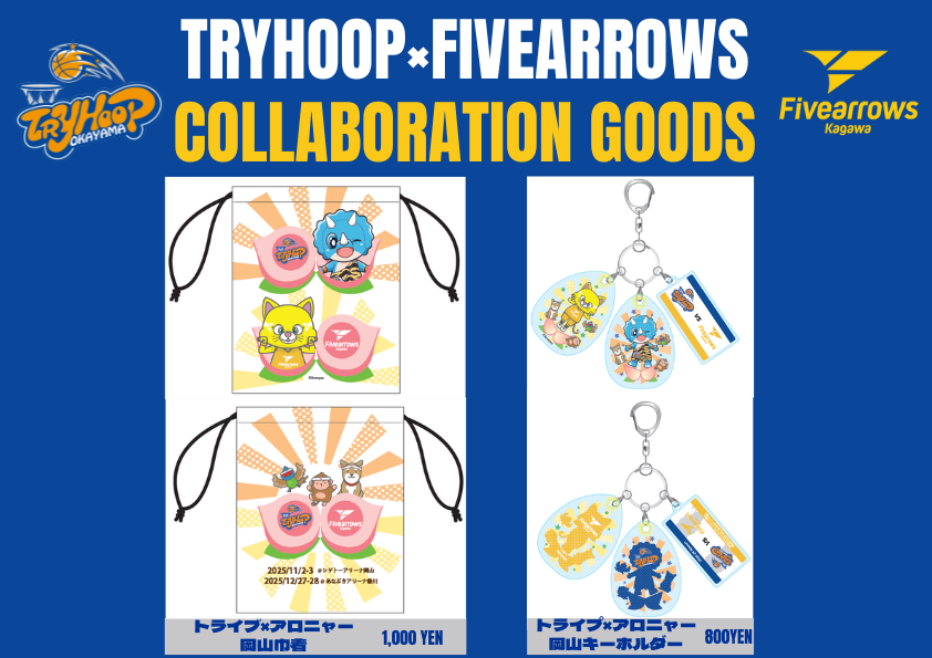 ホームゲーム会場ではトライフープ岡山のオフィシャルグッズを販売しております!