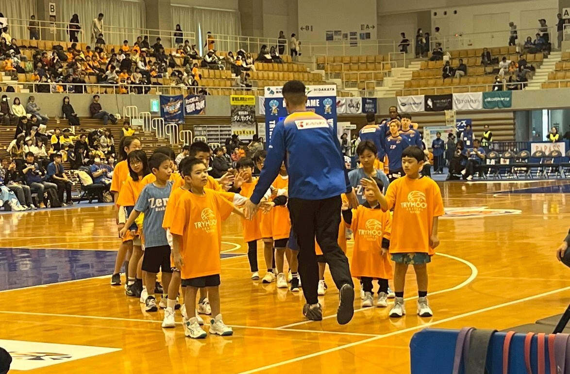 試合に臨む選手たちにエールを送るスターティング5花道を、親子の皆様に務めていただきます。