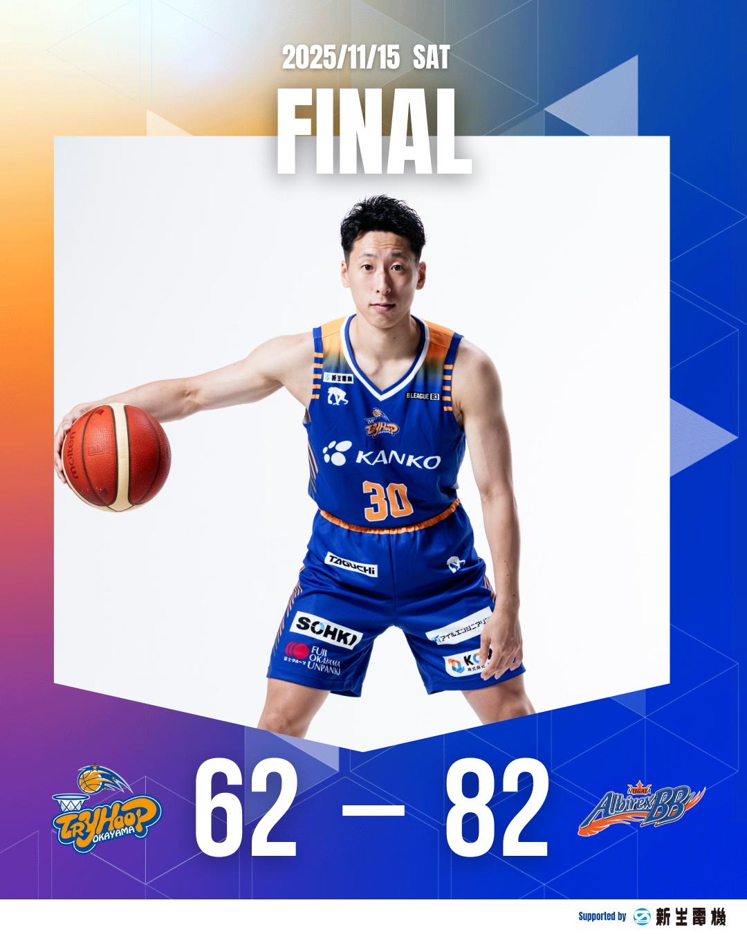 【試合結果】11月15日(土) B3リーグ レギュラーシーズン 2025-26 VS 新潟アルビレックスBB