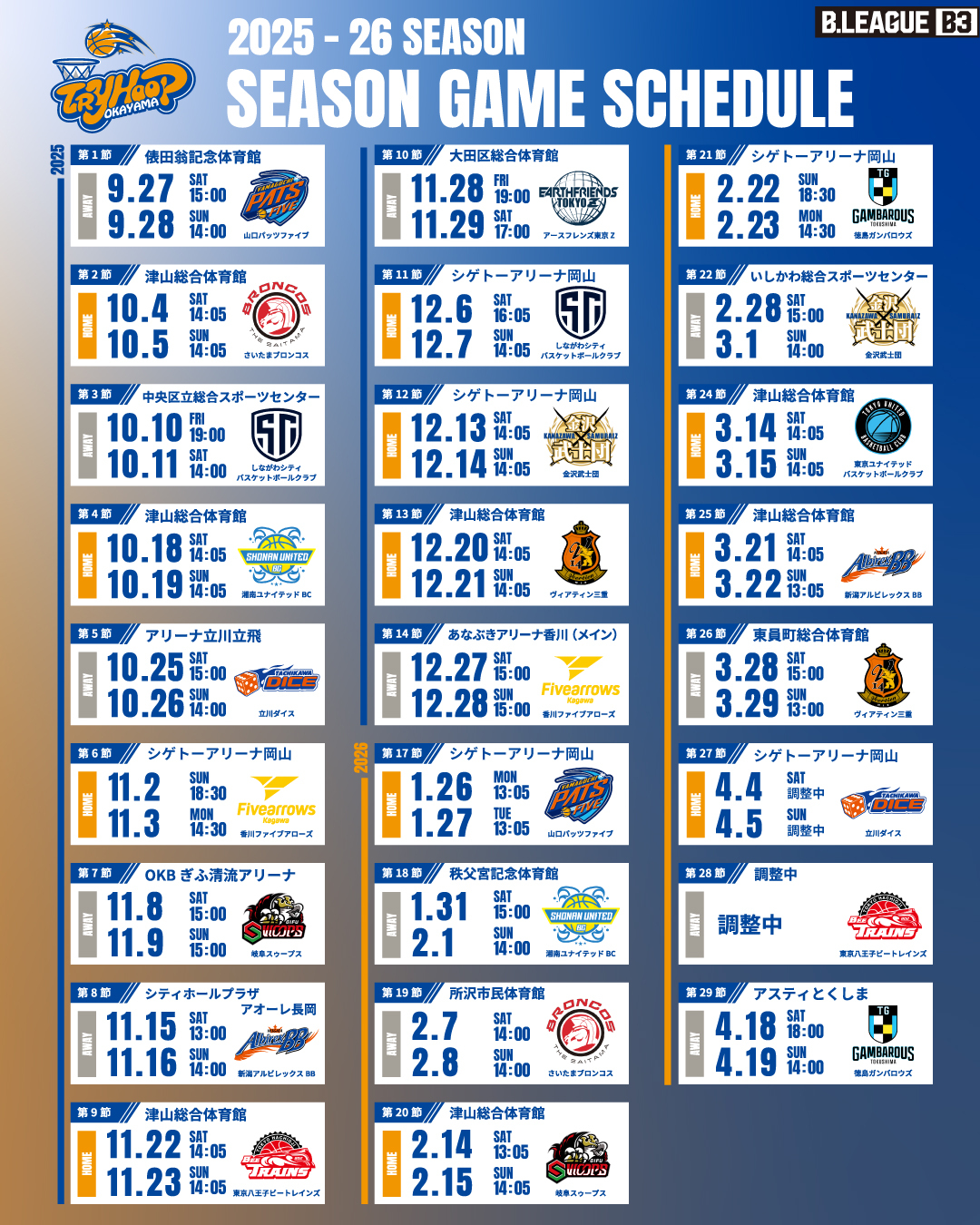 【試合情報】B3リーグ 2025-26 ホームゲーム 試合開始時間変更 (第17節・第20節)のお知らせ