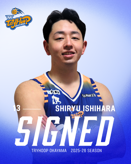 石原選手、ようこそトライフープ岡山へ!練習生として腕を磨きながらチームに貢献してきてくれた石原選手の契約合意を大変嬉しく思います。