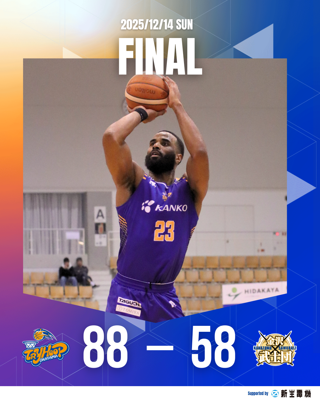【試合結果】12月14(日) B3リーグ レギュラーシーズン 2025-26 VS 金沢武士団