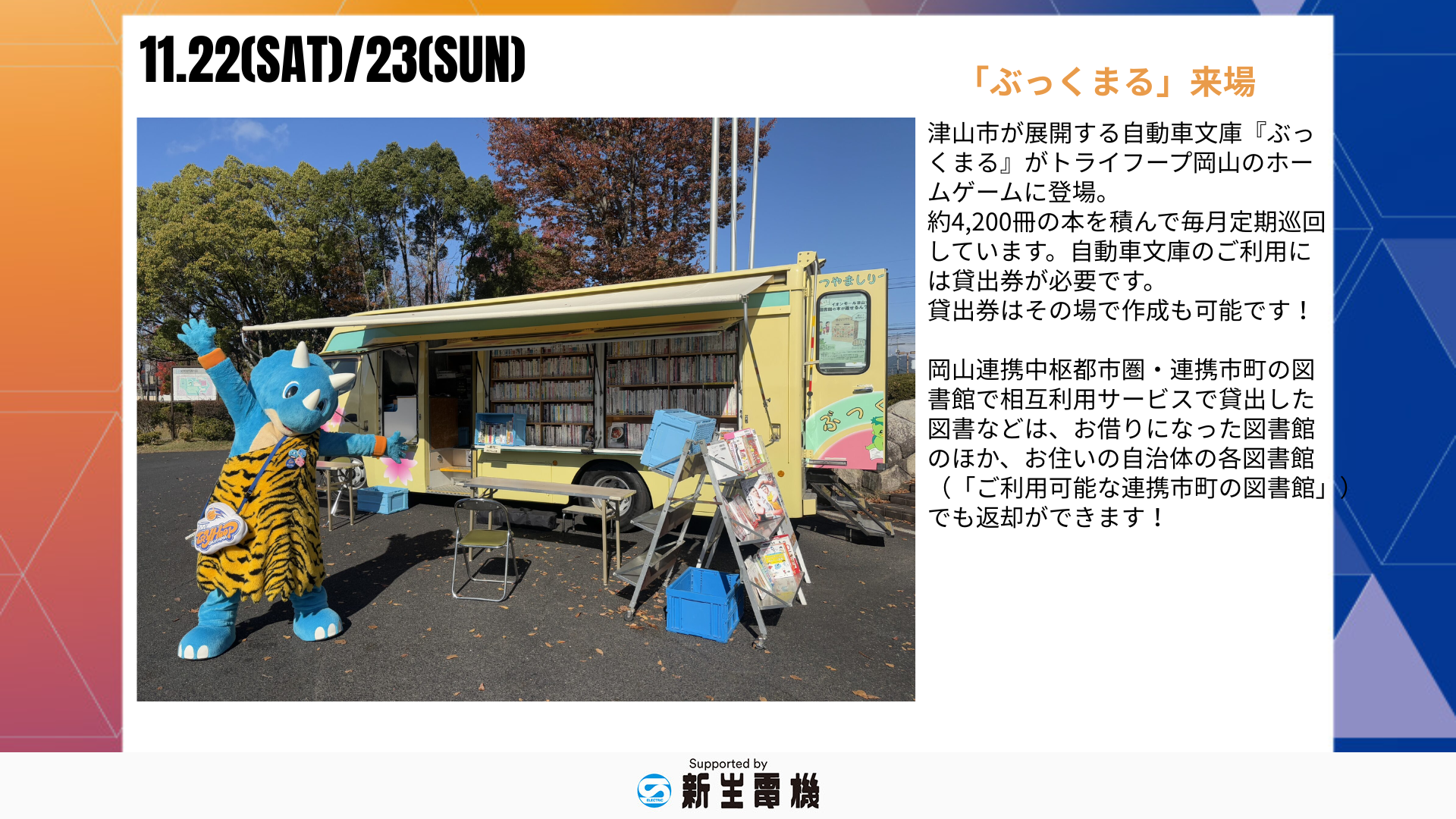 トライフープ岡山ホームゲーム時のみ、臨時ポートが津山総合体育館付近に設置されます。