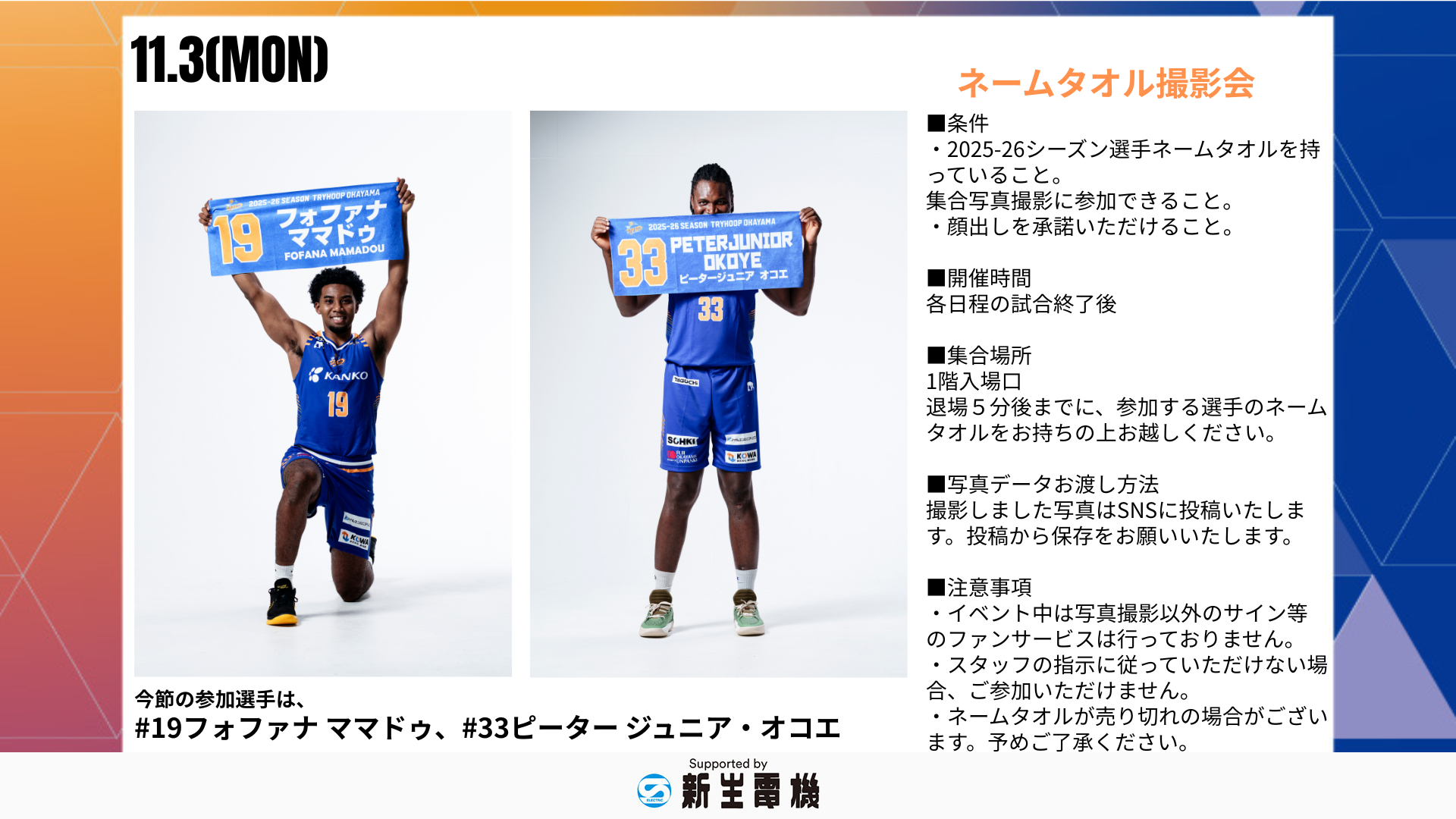 2025年11月2日(日) 18:30 TIPOFF /11月3日(月祝) 14:30 TIPOFF