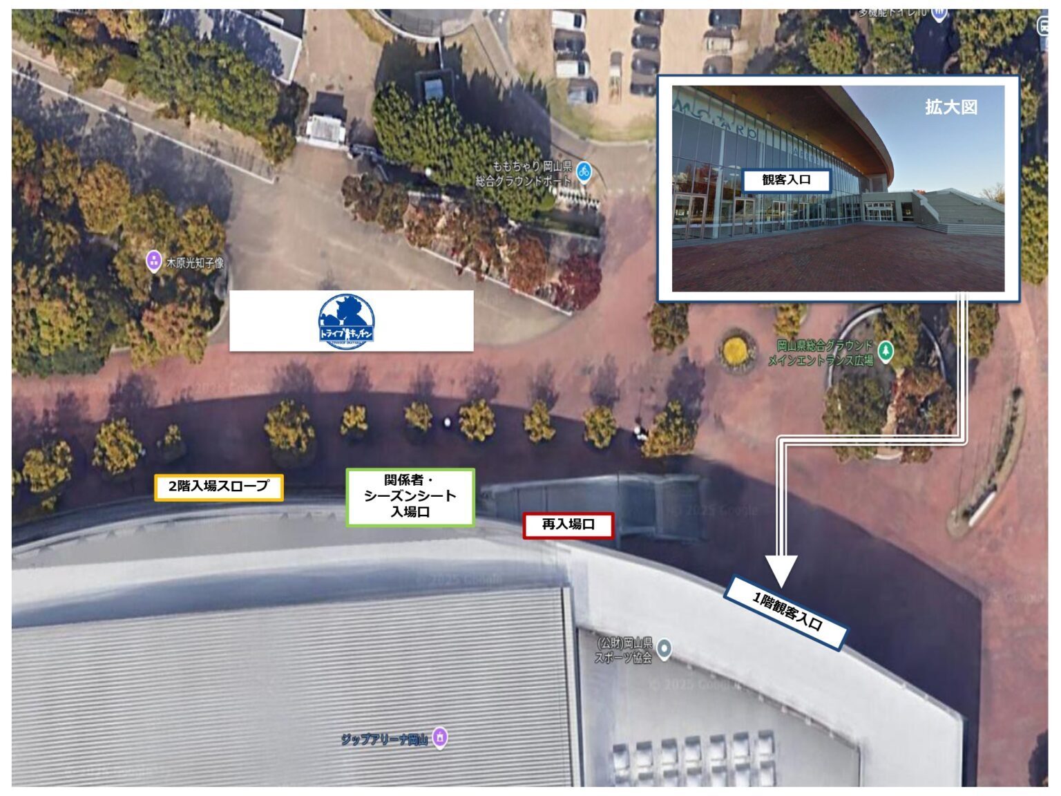 シゲトーアリーナ岡山においては2023-24シーズンより、皆様を1階東側の入口よりお迎えしておりました。